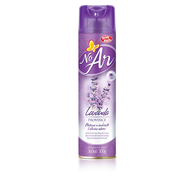 A linha No Ar Aerossol foi especialmente desenvolvida com fragrâncias exclusivas e suaves, possui perfumação prolongada e elimina odores desagradáveis causados por umidade, animais domésticos, banheiro, peixe, alho, suor e cigarro. A versão específica Elimina Odores combate também os odores de tabaco, gordura e mofo.