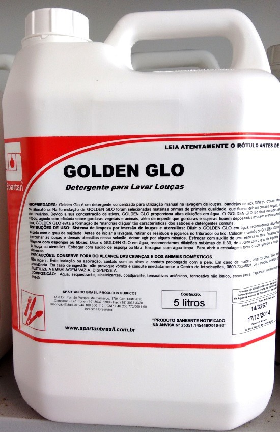 GOLDEN GLO é um detergente neutro concentrado para utilização manual na lavagem de louças, bandejas de inox, talheres, cristais, utensílios de cozinha e frascos delicados de laboratório. Na formulação de GOLDEN GLO foram selecionadas matérias primas de primeira qualidade, que fazem dele um produto seguro, eficaz e suave para as mãos dos usuários. Devido a sua concentração de ativos, GOLDEN GLO proporciona altas diluições em água.
